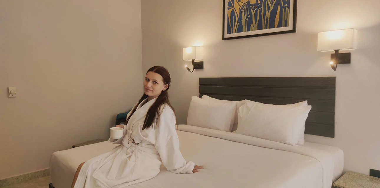 Experience a refreshing and comfortable stay in our Classic Pool View Room, offering 28.75 m² of elegantly designed space overlooking the resort’s vibrant swimming pool. This room is perfect for couples, solo travelers, or small families, and accommodates 1 adult + 2 children, 2 adults + 1 child, or 3 adults with an extra bed for the third person.
